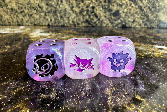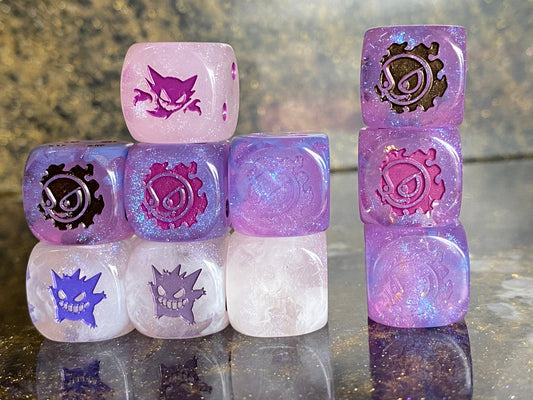 6 Gastly Haunter & Gengar Inspired D6 Custom Dice Pokemon D20 35mm GXEX DnD Polyhedral 10 Dice D&D Polyset