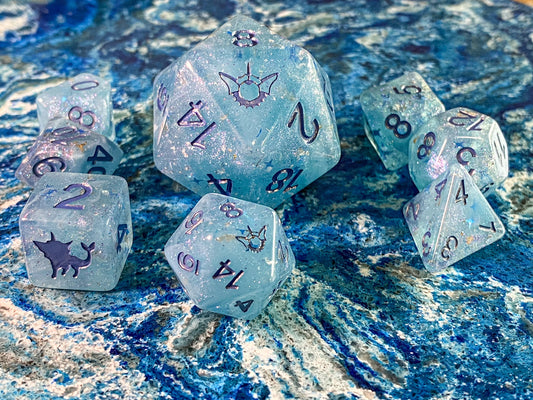 Glaceon Polydice Giga D20 Dice Pokemon Inspired Polyset Custom Set Shiny Eeveelutions D6 RpG DnD Gaming Polyhedral AnimeArt
