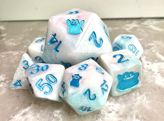 Custom Pokemon DITTO Inspired 8 Dice D&D Polyset D6 D20 35mm DnD Polyhedral