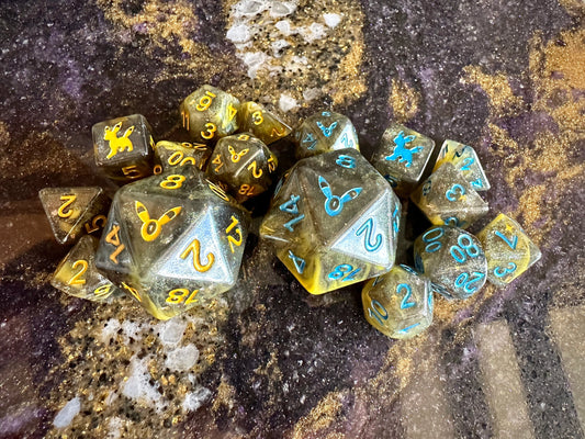 Custom Jolteon Pokemon Inspired Polyset Dice Set Shiny Eeveelutions D6 RPG DnD Gaming Polyhedral Anime Art Vaporeon