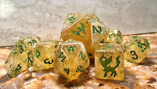 Leafeon Polydice Giga D20 Dice Pokemon Inspired Polyset Custom Set Shiny Eeveelutions D6 RpG DnD Gaming Polyhedral Anime Art