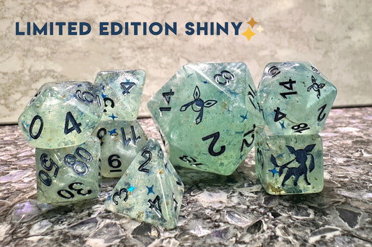 Custom Shiny Eevee Pokemon Inspired Polyset Dice Set Shiny Eeveelutions D6 RPG DnD Gaming Polyhedral Anime Art Vaporeon Flareon Jolteon